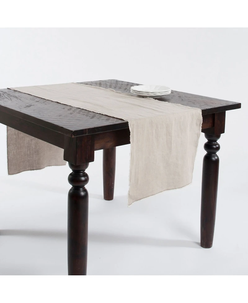 Saro Lifestyle Fringed Linen Design Stone Washed Runner