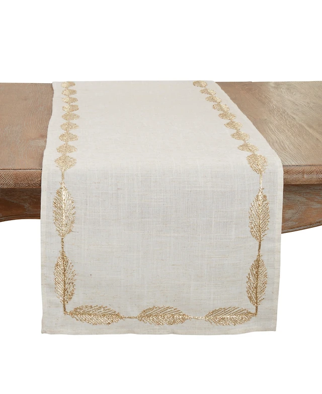 Saro Lifestyle Intricate Leaf Pattern Embroidered Table Runner