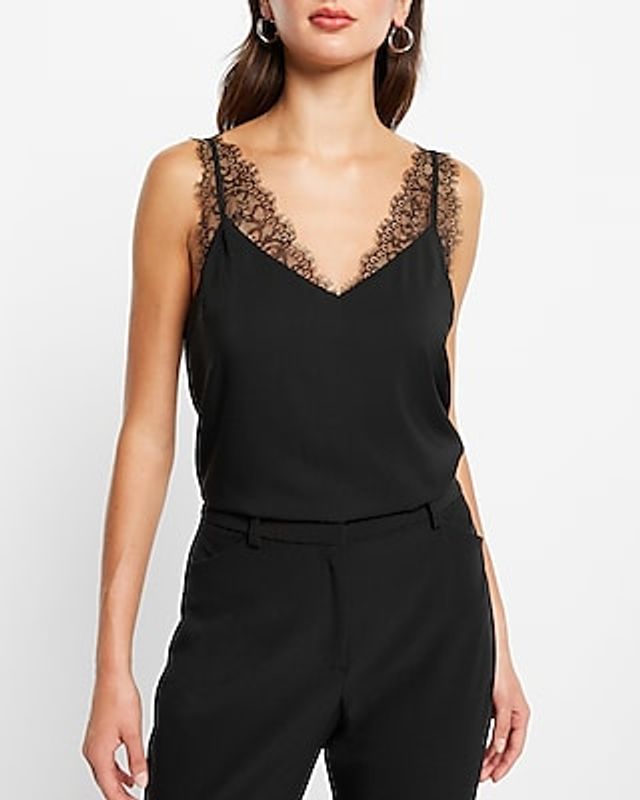 Satin Floral Lace Trim V-Neck Downtown Cami