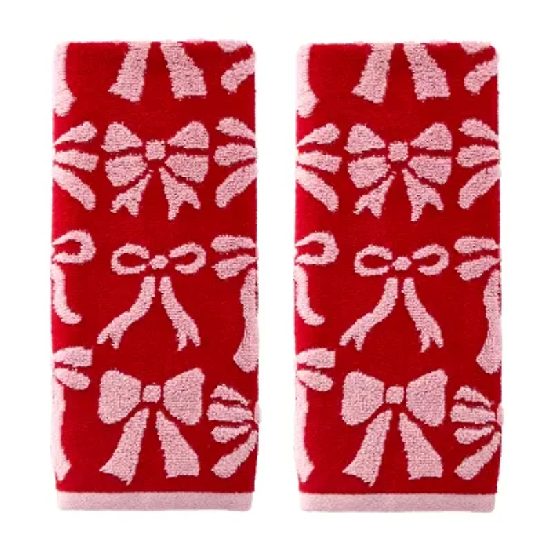 Bring a cute and colorful look to your decor with this 2pc hand towel set. Each towel features a 2-tone scattered bow pattern with a solid banded hem. Pattern colors reverse on back side. 500 GSM weight provides added softness & absorbency without extra bulk, while double-stitched side hems ensure added durability. They can be used in the bathroom, kitchen, bar, or any sink space and make a great host/hostess gift! This fun design works for the holidays, Valentine's Day and anytime year-round. Coordinating bath towel sold separately. At SKL Home we bring personality, fun, and flair to your space with the best in home decor.