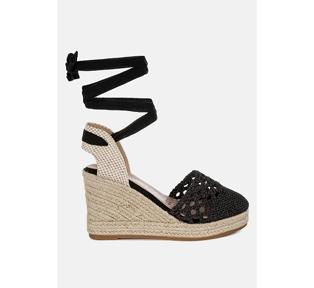 Sea Breeze Woven Lace-Up Espadrille Wedges