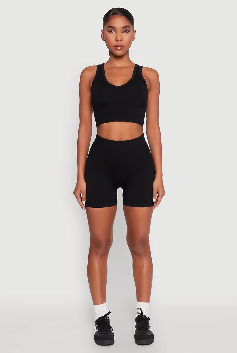 Seamless V Neck Cropped Tank Top and Shorts