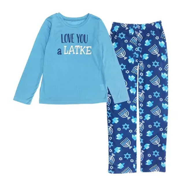 Secret Santa Hanukkah Family Unisex Crew Neck Long Sleeve 2-pc. Matching Family Pajama Sets