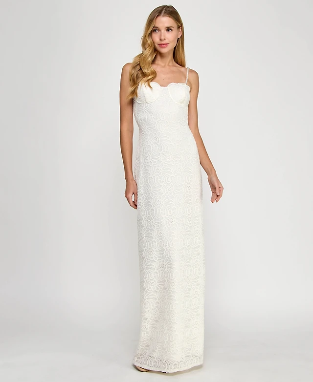 Seni & Cade Juniors' Back-Slit Lace Gown