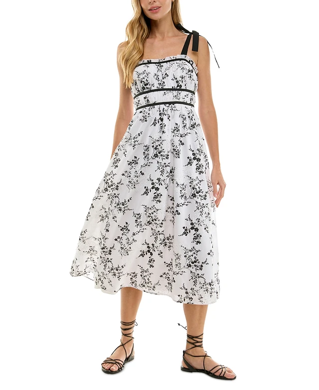Seni & Cade Juniors' Floral-Print Eyelet Midi Dress