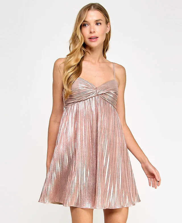 Seni & Cade Juniors' Metallic Pleated Fit & Flare Dress