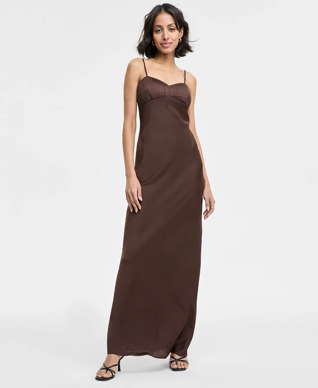 Seni & Cade Juniors' Pintuck Satin Sleeveless Column Gown
