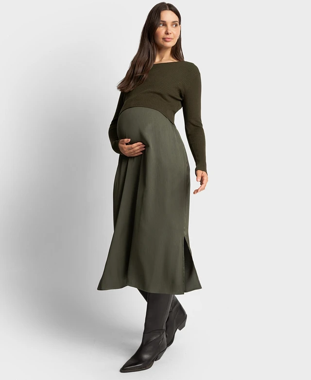 Seraphine Women's Maternity Knit Top with Woven Skirt Dress