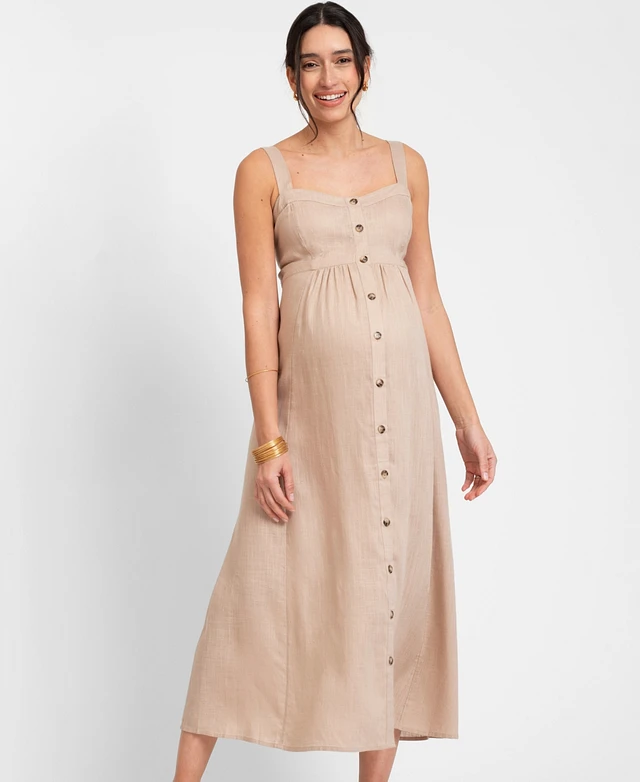 Seraphine Women's Maternity Linen-Blend Button-Front Midi Dress