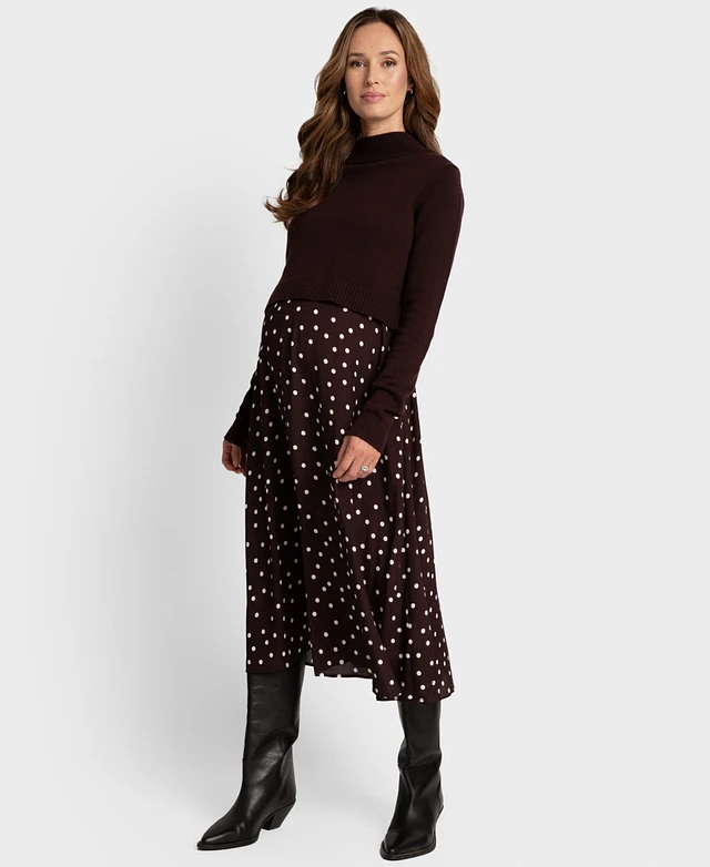 Seraphine Women's Maternity Knit Top with Woven Skirt Dress