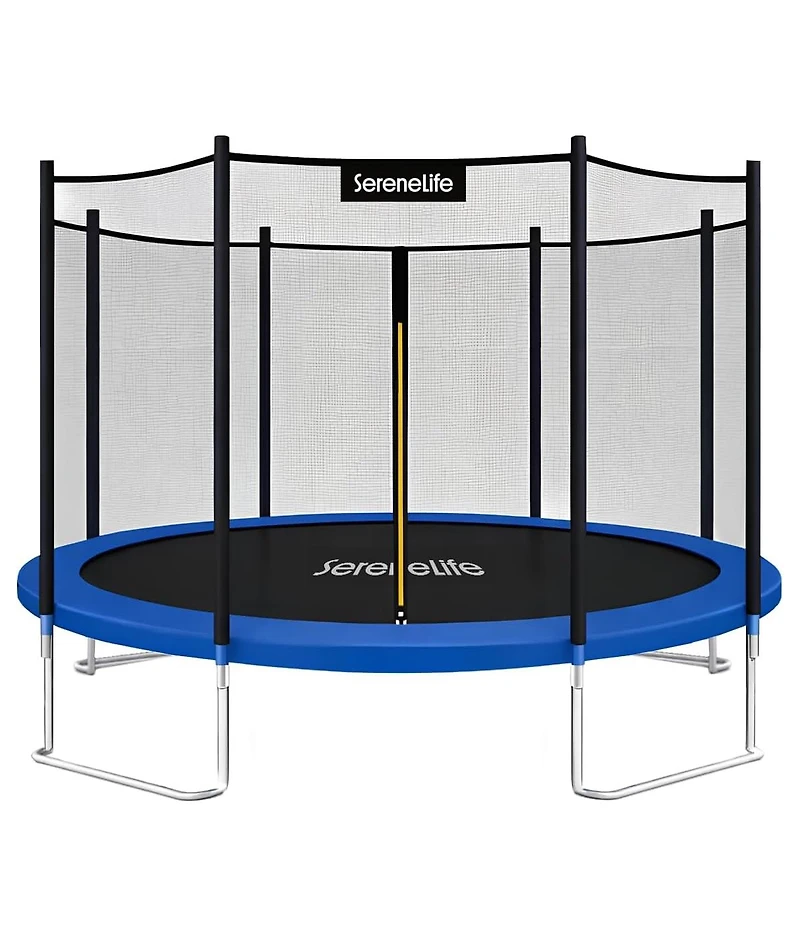 The SereneLife Outdoor Trampoline is built for safe and enjoyable backyard fun for kids, teens, and adults. Available in 8FT, 10FT, 12FT, and 14FT sizes, this heavy-duty recreational trampoline features a strong steel frame with anti-rust coating for long-lasting outdoor durability. The high-quality jumping mat and reinforced springs deliver a smooth, controlled bounce for everyday use.For added safety, the trampoline includes a full enclosure net to help prevent falls and padded poles for extra protection. A sturdy ladder allows easy and safe access for users of all ages. Astm approved to meet safety standards, this backyard trampoline is ideal for family fun, exercise, and active play while helping improve balance, coordination, and overall fitness.