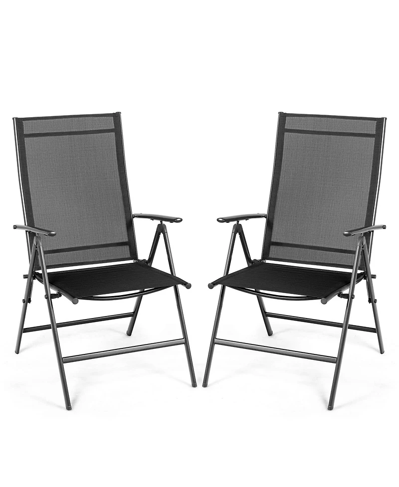 Set of 2 Adjustable Portable Patio Folding Dining Chair Recliners-Black