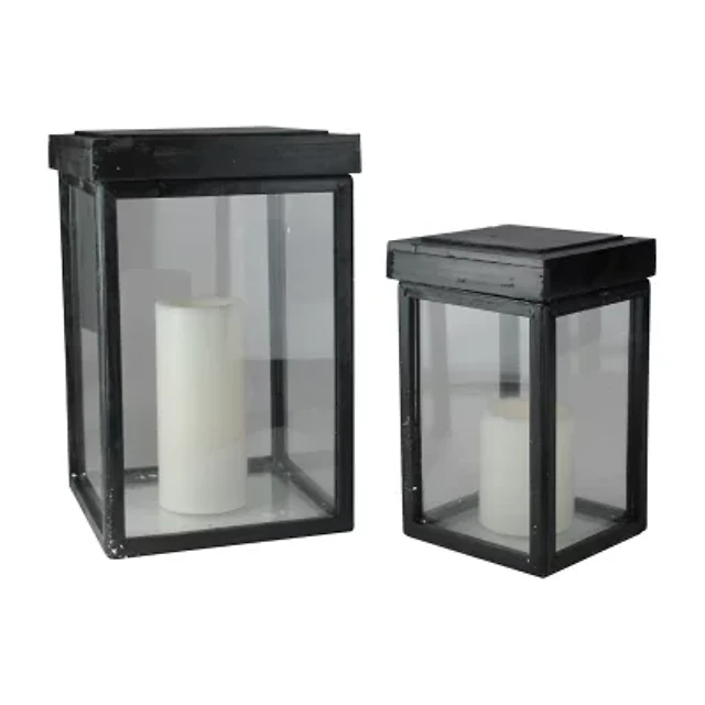 Set of 2 White and Gold Christmas Candle Lamps 25"