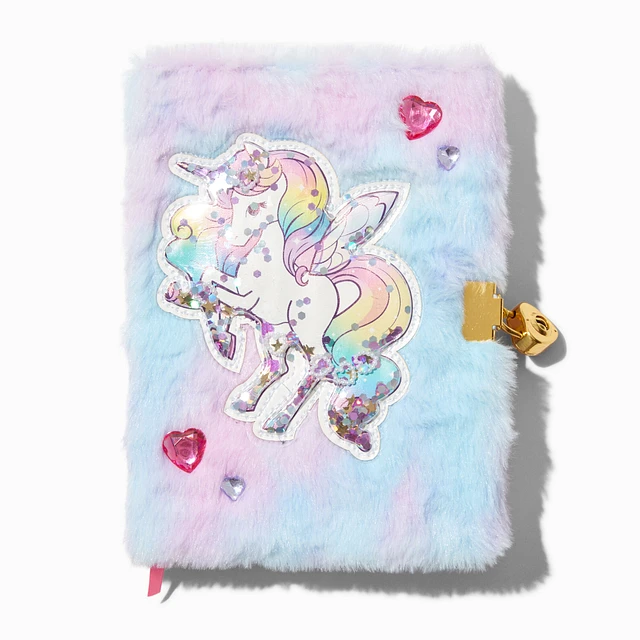 Shaker Unicorn Heart Gem Furry Lock Diary