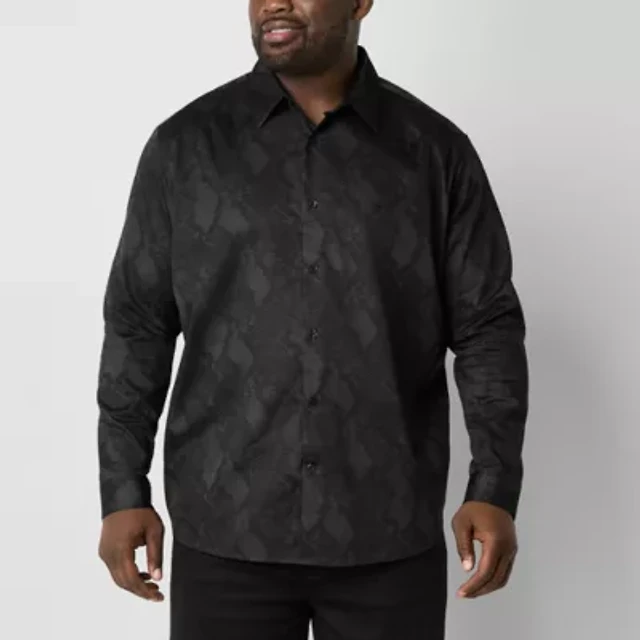 Shaquille O'Neal XLG Satin Mens Long Sleeve Classic Fit Big and Tall Button-Down Shirt