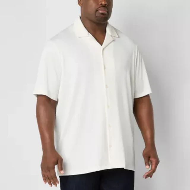 Shaquille O'Neal XLG Textured Mens Short Sleeve Regular Fit Big and Tall Button-Down Shirt
