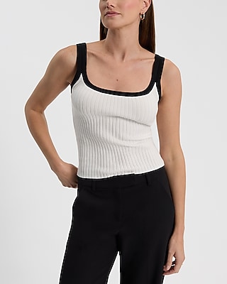 Fitted Ribbed Striped Mock Neck Sweater Tank