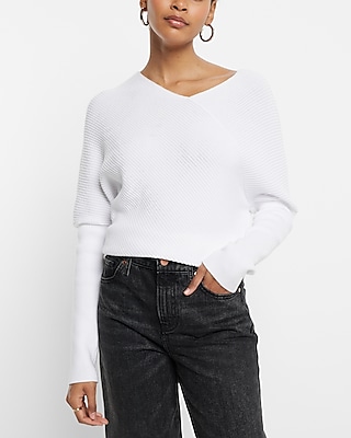 Asymmetrical V-Neck Long Sleeve Banded Bottom Sweater