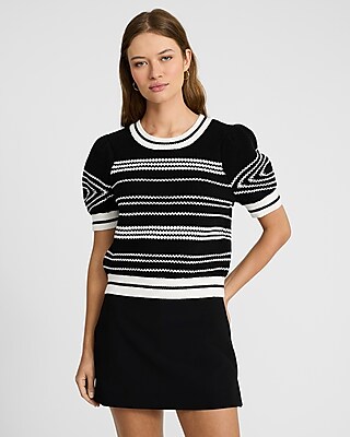 Striped Short Puff Sleeve Sweater