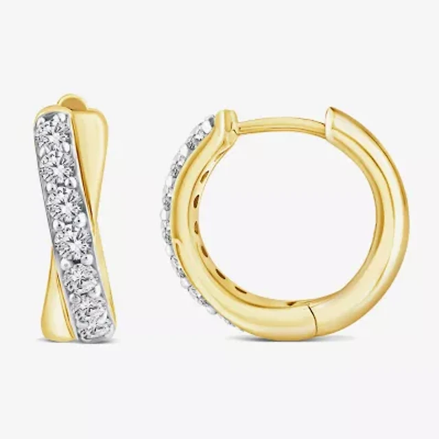(Si2/ H) Womens 1/2 CT. T.W. Lab Grown White Diamond 10K Gold 14.1mm Hoop Earrings
