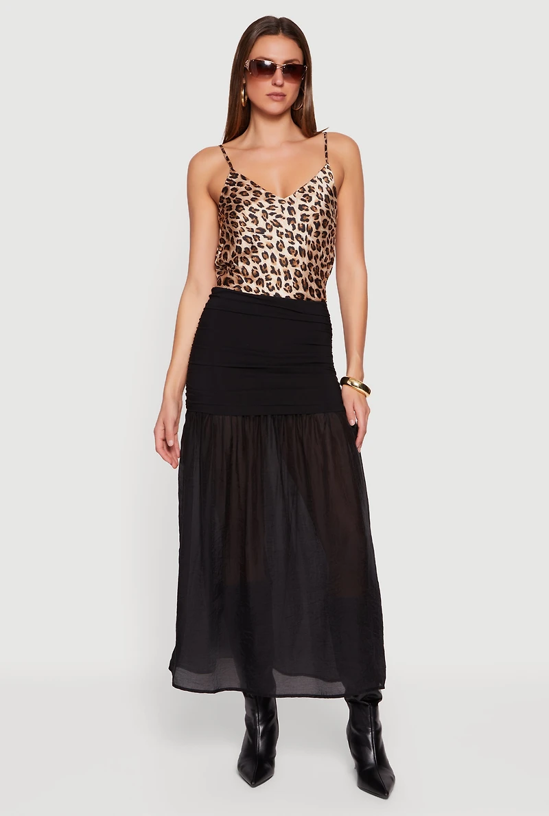 Side Ruched Drop Waist Pleated Chiffon Midi Skirt