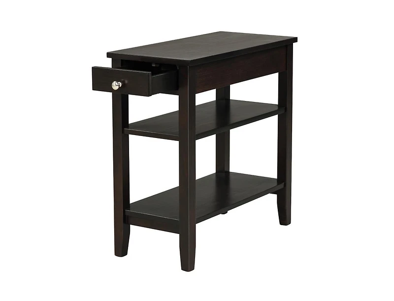 Add functional style to your living space with this side end table, featuring a built-in drawer and two-tier open storage shelves. Designed to maximize space without compromising style, this compact table offers a convenient surface for lamps, books, or decor, while the drawer keeps small items like remotes, chargers, or personal accessories tucked away. The two lower shelves provide open storage for baskets, magazines, or everyday essentials. Perfect for small living rooms, bedrooms, or reading nooks, this table blends seamlessly with modern, transitional, or minimalist decor and delivers everyday organization in a space-saving design.