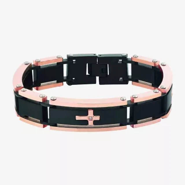 Sideways Mens Stainless Steel Cross Link Bracelet