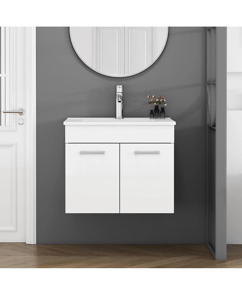 Sillysis Inch Wall Mounted Bathroom Vanity with Ceramic Sink, Soft Close Doors