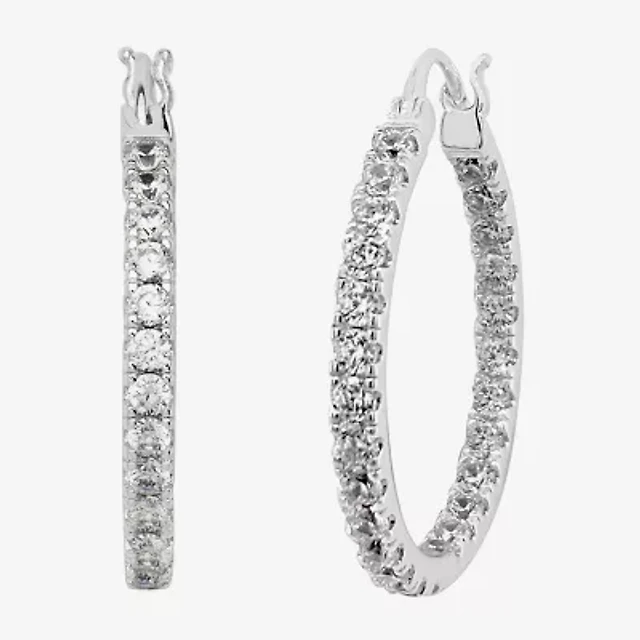 Silver Reflections Womens Cubic Zirconia 27.5mm Hoop Earrings