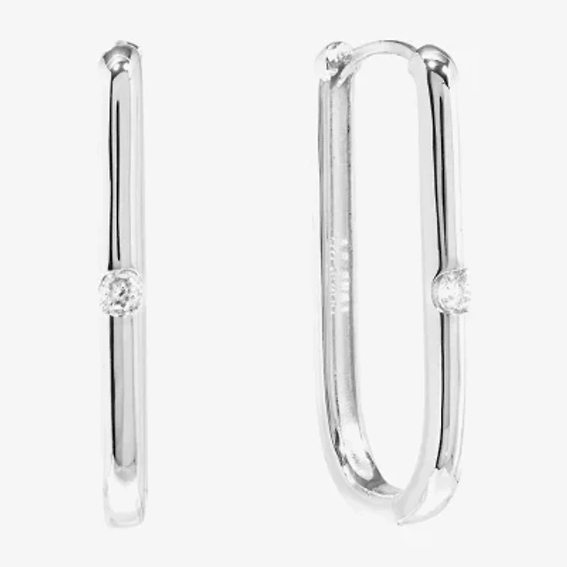 Silver Reflections Womens 23.3mm Rectangular Hoop Earrings