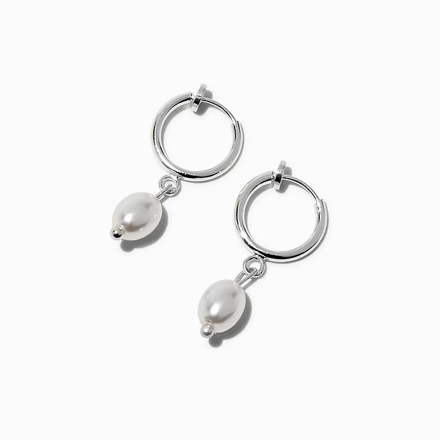 Silver-tone Pearl 0.5" Clip-On Drop Earrings