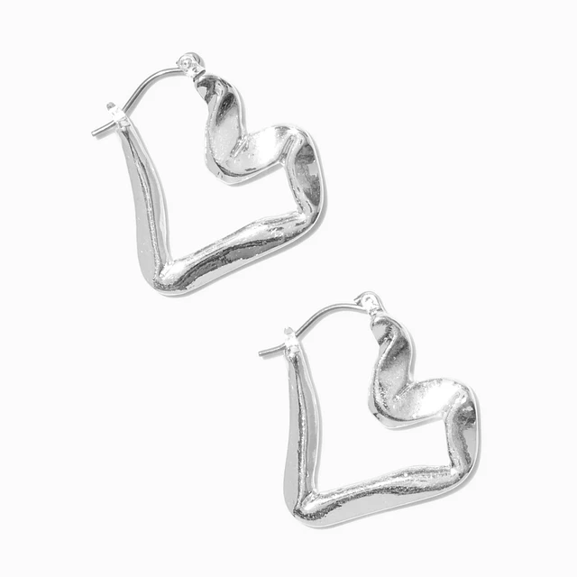 Silver-tone Stainless Steel Heart Dangle Hoop Earrings