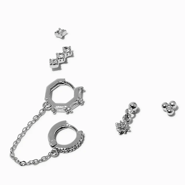 Silver-tone Crystal Bow Earring Stackables Set - 3 Pack