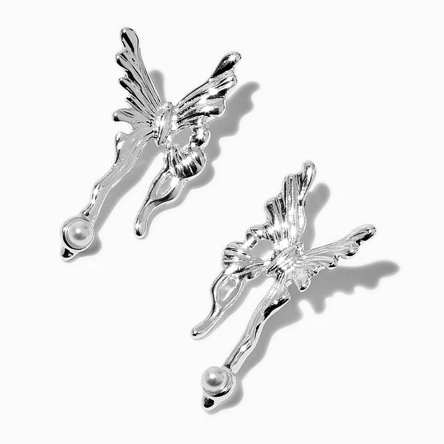 Silver-tone Drippy Butterfly Stud Earrings