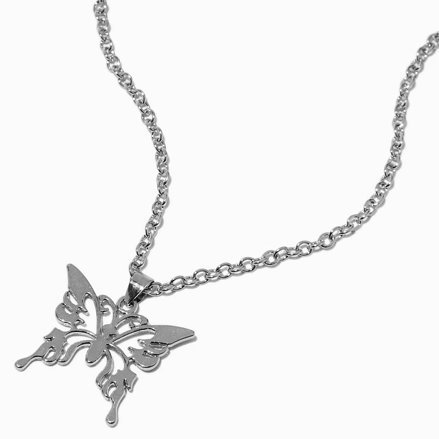 Silver-tone Stainless Steel Pavé Butterfly Pendant Necklace