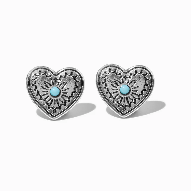 Silver-tone Filigree Heart Cowgirl Stud Earrings