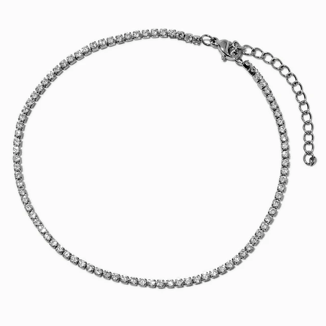 Silver-tone Cubic Zirconia Tennis Choker Necklace