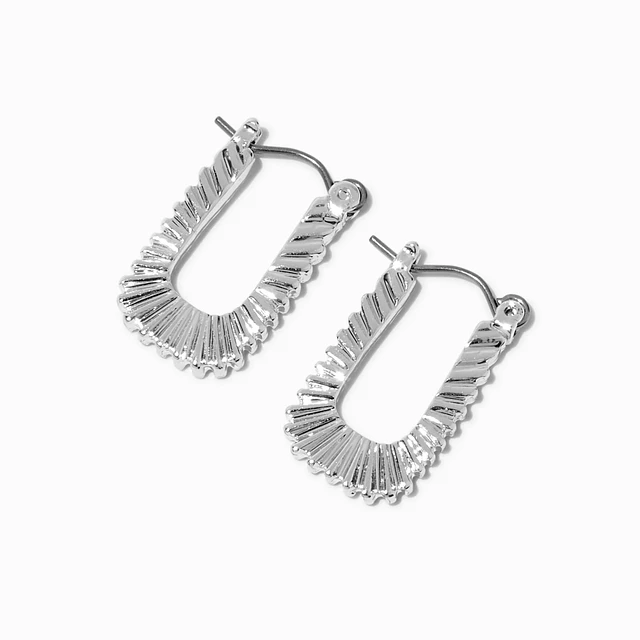 Silver-tone Stainless Steel Textured U-Shape Hoop Earrings