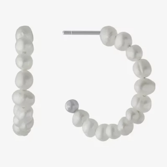 Silver Treasures Cultured Freshwater Pearl Womens White Sterling Silver 15.2mm Hoop Earrings