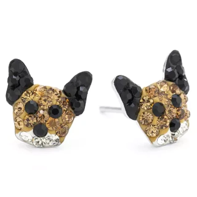 Silver Treasures Dog Brown Crystal Sterling Silver 9.5mm Stud Earrings