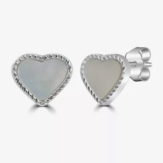 Silver Treasures Genuine Stone White Mother Of Pearl Sterling Silver 10mm Heart Stud Earrings