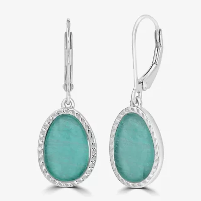 Silver Treasures Genuine Stone Womens Green Amazonite Sterling Silver Oval Drop Earrings