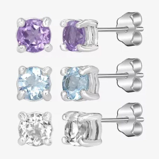 Silver Treasures Genuine Stone Womens Purple Amethyst Sterling Silver 3 Pair Earring Set