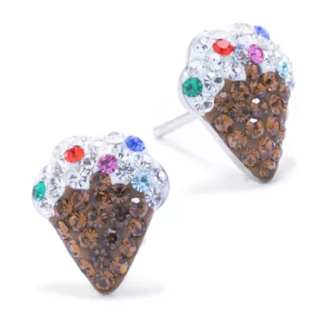 Silver Treasures Ice Cream Multi Color Crystal Sterling Silver 10.1mm Stud Earrings