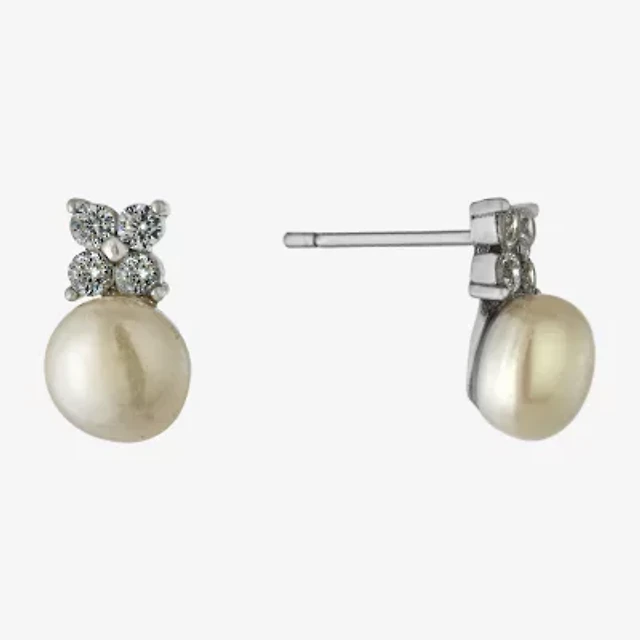 Silver Treasures White Simulated Pearl Sterling Silver 10.7mm Flower Stud Earrings