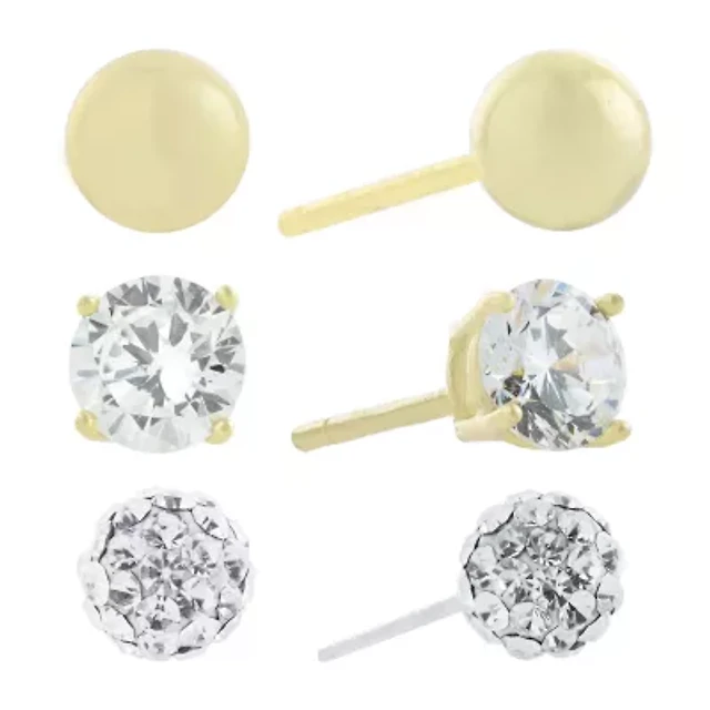 Silver Treasures Womens Cubic Zirconia 14K Gold Over Silver 3 Pair Earring Set
