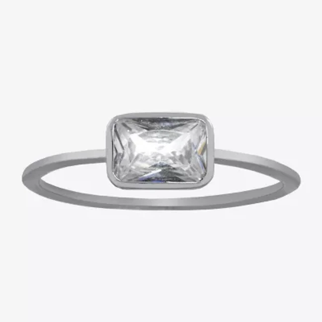 Silver Treasures Womens Cubic Zirconia Sterling Rectangular Delicate Band