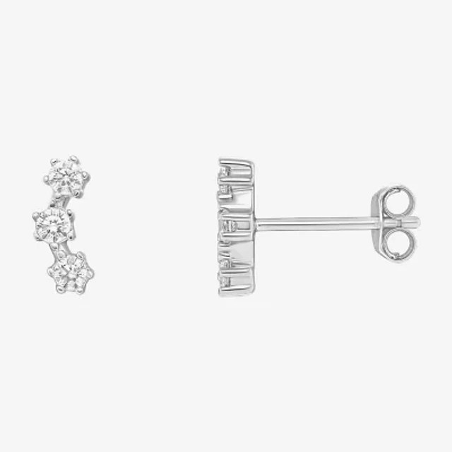 Silver Treasures Womens White Cubic Zirconia Sterling Silver Ear Climbers