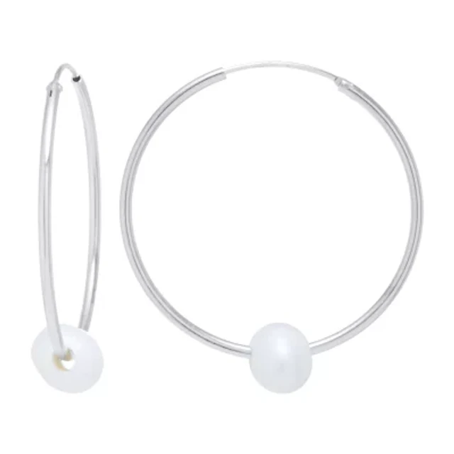 Silver Treasures Cultured Freshwater Pearl Womens White Sterling Silver 15.2mm Hoop Earrings