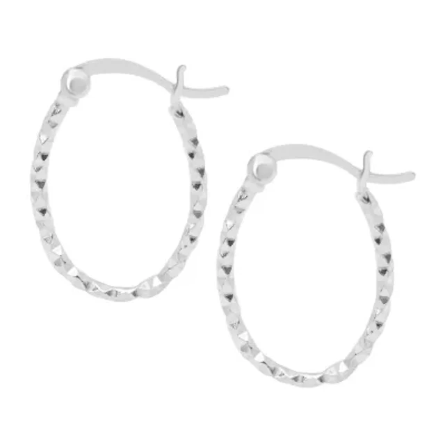 Silver Treasures Twisted Womens Sterling Silver 33mm Oval Hoop Earrings